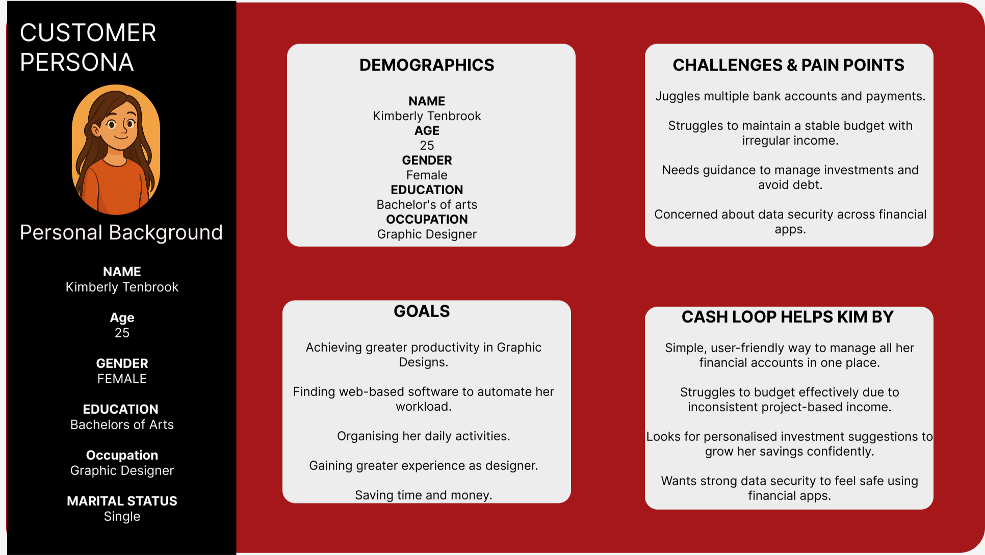This project strengthened my belief in user-centered design. The more I aligned the product with users’ pain points, the more meaningful the experience became. CashLoop reminded me that great design isn’t just about aesthetics or functionality—it’s about creating clarity, reducing stress, and empowering people to feel more confident in their financial lives.